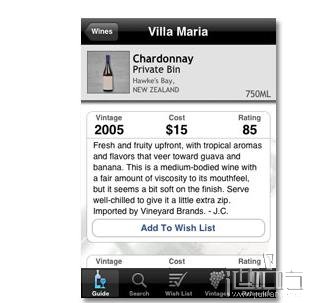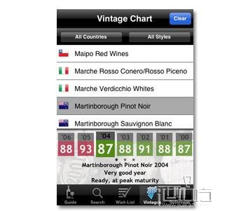 下次,當(dāng)餐廳更換一款年份酒時,咨詢一下Iphone中葡萄酒愛好者指南。它會幫你評估過去17年里125個葡萄酒產(chǎn)區(qū)葡萄酒的成熟度和質(zhì)量等級。
