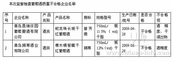 抽查結(jié)果表明,青島市生產(chǎn)企業(yè)生產(chǎn)的葡萄酒質(zhì)量總體較好。抽查中未發(fā)現(xiàn)違規(guī)添加食品添加劑現(xiàn)象。不合格產(chǎn)品存在酒精度、干浸出物理化指標(biāo)不達標(biāo)等問題,兩家不合格企業(yè)市場占有率較低。