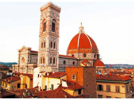 從蘇黎世去佛羅倫薩的直達火車是夜車,清晨6點多抵達佛羅倫薩的Firenze Campo di Marte火車站。列車員不緊不慢地給大家分發茶或咖啡,還有一個小巧的蛋糕,里面是葡萄干和碎果仁,十分香甜可口。梅是第一次吃到這種被叫做PANETTONE的意大利蛋糕,開心極了,其實撒上如雪的白色糖霜味道會更香甜的。據說,500多年來意大利人一定會在每年的圣誕節前后吃無數的“PANETTONE”,于是,PANETTONE也被叫做圣誕蛋糕。最早這種好吃的PANETTONE蛋糕起源米蘭。