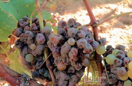 紅葡萄一旦感染上葡萄孢(Botrytis Cinerea),事態(tài)極其嚴(yán)重。然而對(duì)白葡萄卻是一個(gè)轉(zhuǎn)機(jī)。貴腐產(chǎn)區(qū)的早上通常潮濕有霧,適合葡萄孢“發(fā)霉運(yùn)動(dòng)”,下午天氣晴朗,那葡萄孢沒(méi)水了怎么辦,先跟葡萄借借,利用菌絲透過(guò)葡萄皮攝取葡萄中的水分,在有借不還的情況下,葡萄的水分少了糖分就高了。