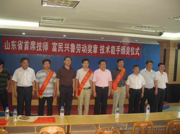 頒獎儀式上,山東省輕工業協會領導分別向蓬萊華魯酒業總工程師王向孔頒發山東省首席技師證書、山東省富民興魯勞動獎章、山東省技術能手證書,向山東密水葡萄釀酒有限公司王志峰和德州市奧德曼葡萄酒廠徐義頒發了山東省技術能手證書。