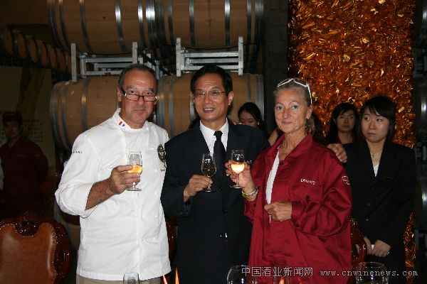王朝公司董事長白智生向法國總統廚師 Bernard VAUSSIN夫婦敬酒