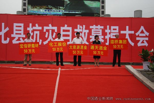 日前,在吉林省通化縣抗災(zāi)自救募捐大會(huì)上,吉林省大泉源酒業(yè)有限公司和中國(guó)通天酒業(yè)集團(tuán)各捐獻(xiàn)50萬(wàn)元,用于支持家鄉(xiāng)的災(zāi)后重建工作。