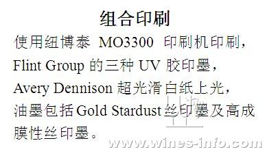 1903年,一個小印刷店Collotype因其具有最佳的生產工藝而得名。如今,那個小印刷店已經成長為世界最大的最負盛名的葡萄酒標印刷集團,座落于世界最大的葡萄酒生產區域。自1984年起,Collotype即為葡萄酒及白酒企業提供高質量的精美的不干膠標簽。Collotype目前是全球最大的葡萄酒標印刷商,在澳大利亞、南非,北美及歐洲有多家標簽印刷工廠,它也是紐博泰在全球最大的用戶之一,擁有紐博泰設備數十臺,其中全功能MO組合型印刷設備近20臺。如下即是Collotype應用紐博泰MO3300印刷機印刷生產的2010年的獲獎作品: