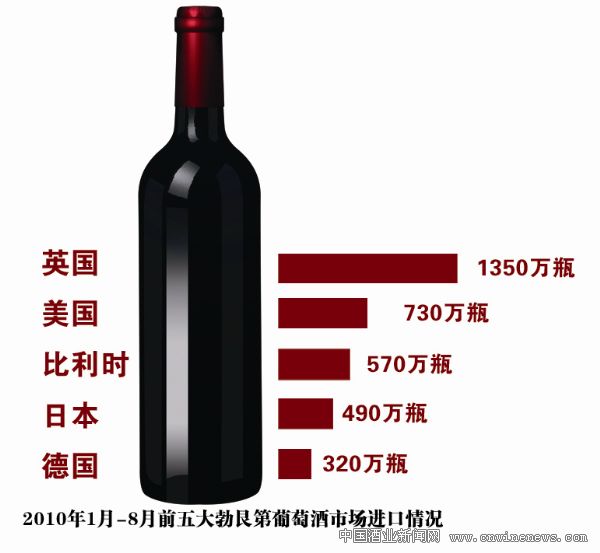 今年1月—8月,中國(包括香港和臺灣)進口了80萬瓶勃艮第葡萄酒,比2009年同期增長了70%—90%。目前,日本是亞洲地區進口勃艮第葡萄酒最多的國家。