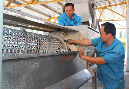 【中國糖酒網葡萄酒新聞資訊】2011年8月8日,新疆伊珠葡萄酒有限公司技術人員正在檢修葡萄輸送提升機。每
