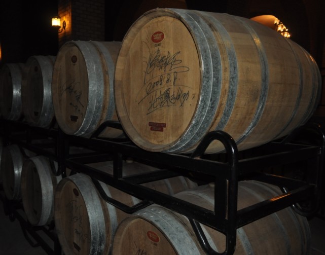 記者現場看到,在一些存酒的橡木桶上刻著不同人的簽名。現場講解人員告訴記者,酒窖的這個區域是君頂酒莊顧客的私人存酒區,他們買下整桶葡萄酒后保存在這里,可以隨時來取也可以分批按瓶來取走酒,酒窖的恒溫恒濕環境能很好保存酒體的質量,使顧客每次品嘗的都是最佳口感與品質的葡萄酒。