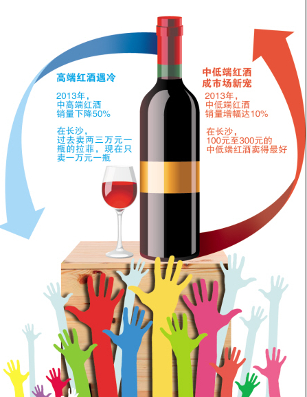 高端紅酒寒冬成就了中低端紅酒的春天。2013年在高端紅酒銷量下降50%的情況下,中低端紅酒銷量增幅達10%。