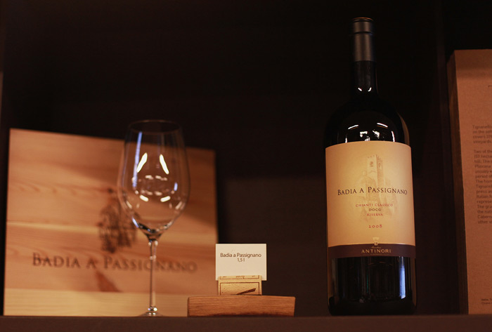 帕西諾修道院存釀經典坎蒂干紅(Badia a Passignano Chianti Classico DOCG Riserva),由100%的桑嬌維塞葡萄釀造,自1996年起,經典坎蒂要求由80-100%的Sangiovese(桑嬌維塞)釀造,絕大多數的經典坎蒂都會混入解百納等其它品種的葡萄以形成更豐富的口感,只有極少的酒莊使用100%的桑嬌維塞釀造經典坎蒂,因為這要求所有的葡萄都是優選的高品質桑嬌維塞,對葡萄園的風土、葡萄的種植、成本等很多方面都有更高的要求。