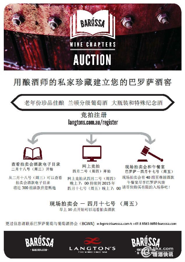 具有50年歷史的巴羅薩葡萄酒拍賣將于2015年4月首次舉辦網絡巴羅薩葡萄酒拍賣會(Barossa Wine Chapters Au