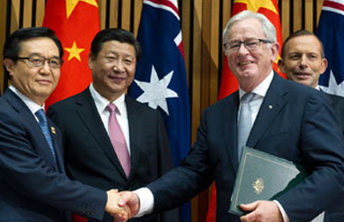 去年十一月習近平主席訪問澳大利亞期間,兩國宣布實質性結束自由貿易協定談判。目前雙方正抓緊進行文本和