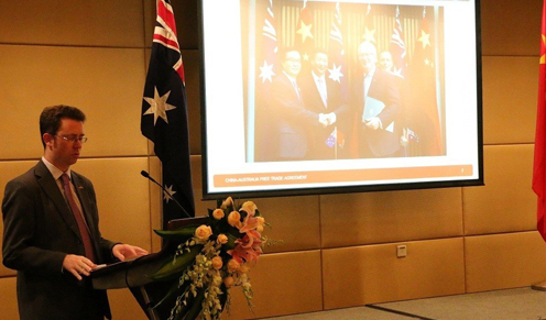 為了進一步促進公眾和相關從業人員對中澳自貿協定的了解,澳大利亞駐成都總領事館特別邀請了澳駐華使館經濟參贊顧兆倫(Lachlan Crews)赴成都和重慶就協議的進展情況和主要成果進行了介紹。顧兆倫參贊不僅面向雙方企業,還專門針對商務(外經貿)主管部門做了詳細介紹,并接受了本地媒體的訪問。