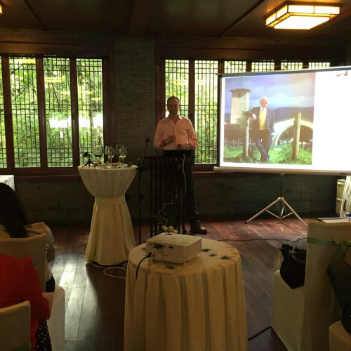 Mark講課時非常投入,肢體語言也相當豐富,時而揮起手臂,時而快速走向投影儀的另一邊,品酒時總會問大家對這款酒的看法,讓人肅然起敬,又充滿親切感。在講課結束后頒發證書時,Mark很配合地和大家一 一合影,活動在一片歡聲笑語中結束。