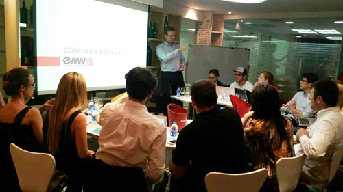 下午的課程在EMW(由西往東美酒公司)開始。與孫志軍總編同為第16屆學(xué)員、由西往東(上海)貿(mào)易有限公司首席執(zhí)行官Edouard Duval通過公司的成功運(yùn)營,介紹了葡萄酒在餐飲渠道的推廣方式及消費(fèi)特點(diǎn)。EMW中國葡萄酒品牌大使李珍卿介紹了EMW公司中國葡萄酒市場的拓展情 況,并帶領(lǐng)學(xué)員們品鑒了青島大好河山酒莊、賀蘭山東麓留世酒莊的5款產(chǎn)品。隨后,大家就中國葡萄酒的法規(guī)、稅收、釀造工藝等方面話題進(jìn)行了探討。