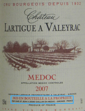 MIS EN BOUTEILLE A LA PROPRIETE——公司裝瓶