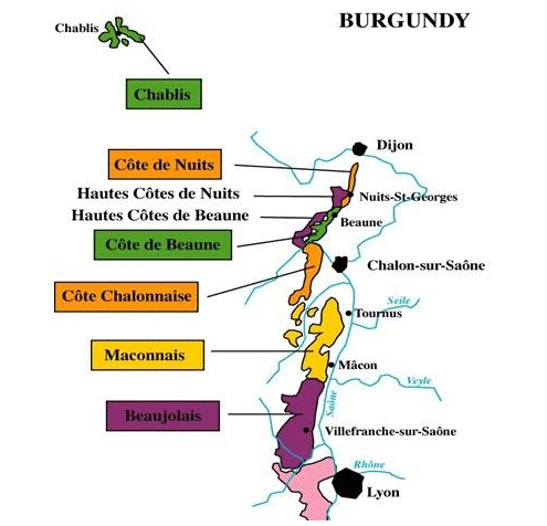 勃艮第共分為5大產區,他們分別是夏布利、夜丘、伯恩丘、夏隆內丘(Cote Chalonnaise)和馬貢(Maconnais)。其中,夜丘和伯恩丘又合稱為金丘(Cote d’Or),是勃艮第葡萄酒產區最精華的核心地帶。