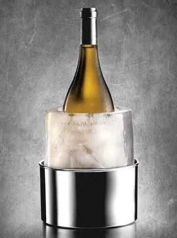 冰模是一種完全用冰制作而成的“藝術品”。在雙層模子里倒入水,冰凍24個小時后即可得到中部空心的冰模。把冰模放在不銹鋼底座上,就可以用來冰凍葡萄酒了。冰凍葡萄酒的時候,冰模的形狀可以維持6個小時左右。