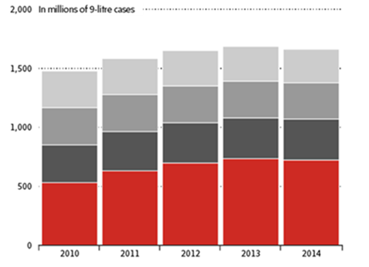 中國不僅是著名的葡萄酒生產(chǎn)國,對飲品消費(fèi)也有很高的品味。據(jù)國際葡萄酒及烈酒研究所(IWSR)調(diào)查數(shù)據(jù),2