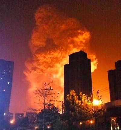 8月12日晚11點30分左右,在天津濱海新區第五大街與躍進路交叉口的一處集裝箱碼頭發生爆炸,造成多人傷亡。