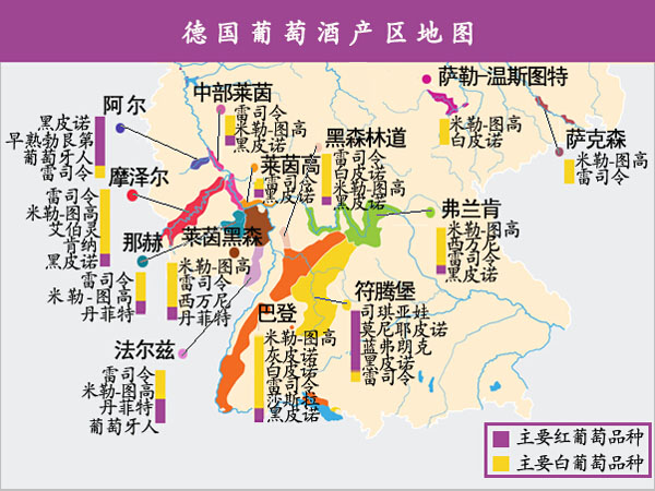 德國主要葡萄酒產(chǎn)區(qū)及其葡萄品種中英文對照
