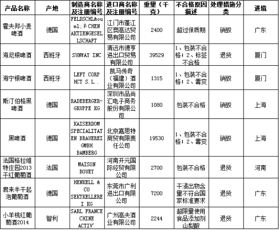 國家質(zhì)量監(jiān)督檢驗(yàn)檢疫總局發(fā)布2015年12月進(jìn)境不合格食品、化妝品信息,共計(jì)229批產(chǎn)品在入境檢測(cè)時(shí)發(fā)現(xiàn)不合格,其中,110.98噸進(jìn)口啤酒、葡萄酒因超過保質(zhì)期、違規(guī)使用添加劑、產(chǎn)品霉變等問題被銷毀、退貨。