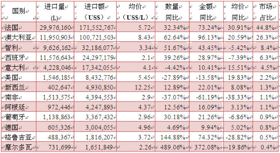 進口瓶裝葡萄酒迎來首次均價上漲