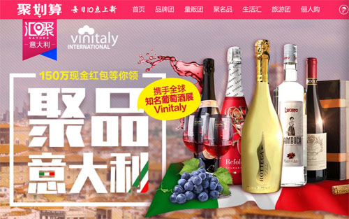 2016年4月11-13日,聚劃算與意大利vinitaly合作推出“聚品意大利”,64款來自意大利酒莊的知名葡萄酒登陸聚劃算,將意大利葡萄酒及酒文化引進國內。數據顯示,目前,85后成葡萄酒消費主力,以往聚劃算平臺上銷售的葡萄酒以西班牙、法國出產為主,意大利葡萄酒的強勢加入,或將“分食”市場。