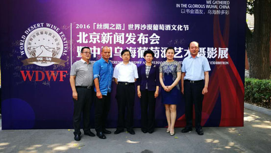 2016年6月18日,“2016『絲綢之路』世界沙漠葡萄酒文化節”北京新聞發布會暨中國烏海葡萄酒藝術攝影展在北京的釀酒大師藝術館(MIBA)成功召開。內蒙古自治區貿促會會長劉廷山、烏海市人民政府市長史萬鈞、烏海市委常委宣傳部長王曉平、烏海市人民政府副市長冀曉青、新華網食品頻道主編楊玉云、香港葡萄酒商會會長何耀康、全球首部中國葡萄酒課程編審撰寫者郭松泉、著名音樂人科爾沁夫、著名作曲家吳夢奇、釀酒大師藝術館(MIBA)董事長郭翠萍、釀酒大師藝術館(MIBA)館長寧小剛等相關部門領導出席了此次新聞發布會,并于發布會上先后致辭。發布會后,現場舉行了中國烏海葡萄酒藝術攝影展,展出由釀酒大師藝術館(MIBA)館長寧小剛以及環球旅行攝影師莫梵稀親赴烏海拍攝的作品30余副。