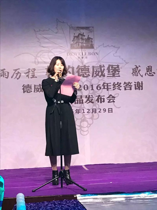 晚宴上,德威堡中國運營總部總經理劉振浩發表了晚宴致辭,為活動虔誠送上一份祝賀與支持,也代表德威堡誠摯感謝廣大支持者!感謝德威堡不遺余力的為這個大家庭奮斗的家人們。如本次活動舉辦方成福英女士,她加入德威堡迄今已有兩年,自酒莊開業起,便竭盡全力投入到酒莊的運營中。期間通過房地產團購、行政單位食堂、酒店餐飲、企業招待、禮品禮贈等銷售渠道,并微信公眾平臺推廣、商業區廣告投放、舉辦大型文化經濟活動等宣傳推廣策略,讓德威堡品牌穩占市場,銷量連年遞增。同時圍繞口碑及服務,通過高質量、專業化的服務,以“走心”策略贏得了新老顧客朋友的認可,讓整個麻城市民肯定了德威堡,全面加強品牌影響力。