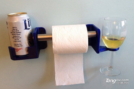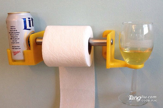 現在出現了一個令人忍俊不禁的小發明——新型廁紙酒架,中間放廁紙,兩邊可放置酒杯和酒瓶,這樣當你如廁時,可以順手拿起酒杯,隨手倒一杯葡萄酒或啤酒,慢慢品嘗(不知這時葡萄酒的香氣會不會更加的復雜)。