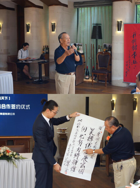 2017年8月9日10:58分昊樽集團與瀛寰寶奇在集團旗下萊品酒窖正式簽署戰略合作協議。昊樽集團總裁余閩先生、