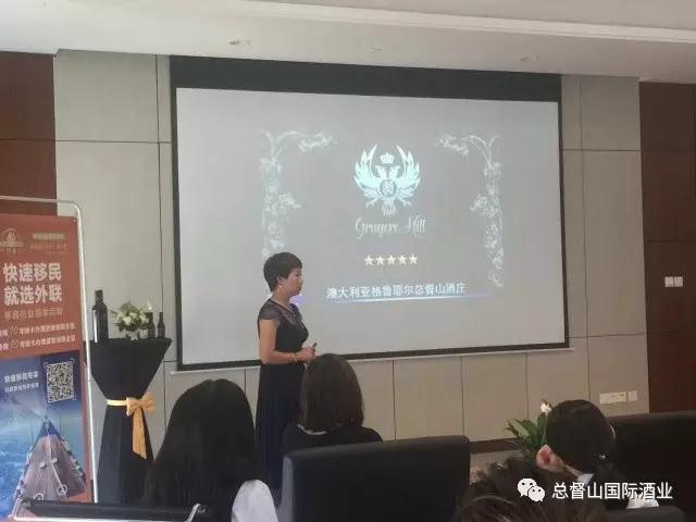 澳大利亞格魯耶爾總督山國際酒莊品鑒師劉紅伶女士介紹總督山酒莊并分享了紅酒的種類、紅酒的品鑒。