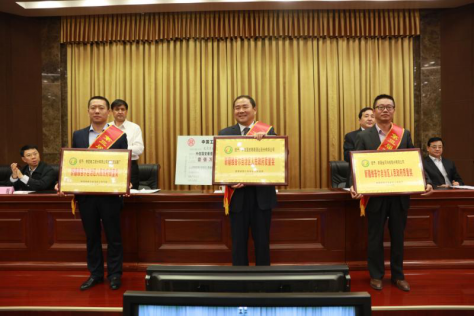 中信國安葡萄酒業(yè)股份有限公司副董事長、總經(jīng)理蘇斌(圖中)代表中葡酒業(yè)獲領(lǐng)自治區(qū)人民政府質(zhì)量獎
