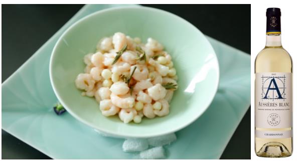 奧希耶白葡萄酒,身著明亮美麗的黃色酒裙,帶著淡淡的粉紅葡萄柚和杏花的芬芳。作為一款上佳的白葡萄酒,奧希耶白葡萄酒頗為清新,入口細(xì)膩,配合上等龍井的茶香,賦予了蝦仁更多滋味,彈牙的蝦肉和飽滿的酒體融合得十分和諧。