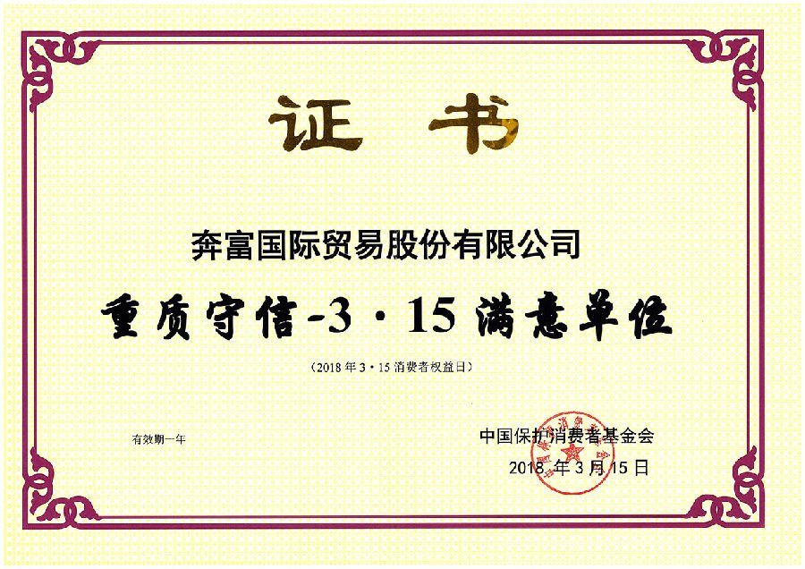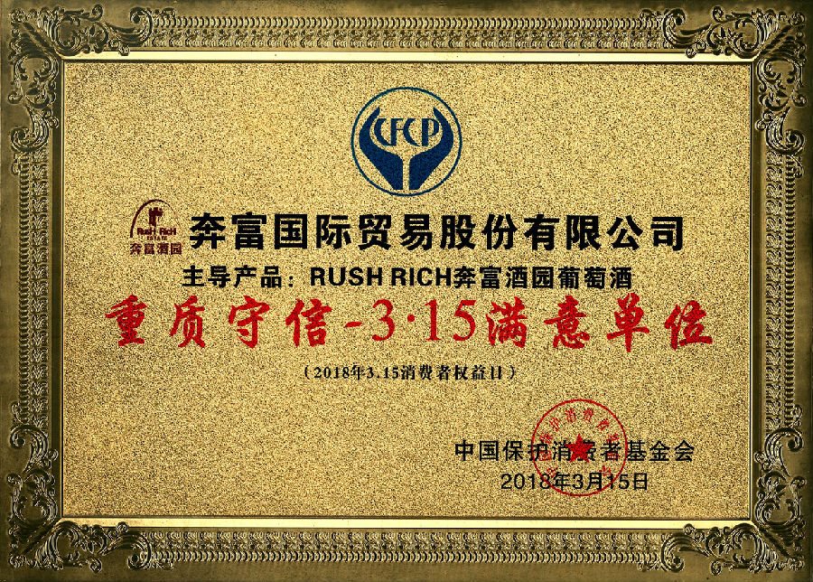 奔富股份在3.15再度獲得中國保護消費者基金會頒獎這是“奔富酒園RUSHRICH”品牌繼2017年全面參與中國消費者保護基金會的“消費者權益保護”活動之后,在2018年3.15消費者權益日來臨之際,依據眾多專家的評審和社會調查的綜合結果,決定再度授予澳大利亞“奔富酒園RUSHRICH”品牌運營公司奔富國際貿易股份有限公司為“2018年3.15消費者權益保護”滿意單位。這也是該基金會連續兩年授予奔富股份此獎項,充分體現了對奔富股份在過去一年中對中國市場的品牌建設和全國消費者的權益保護方面的高度認可。