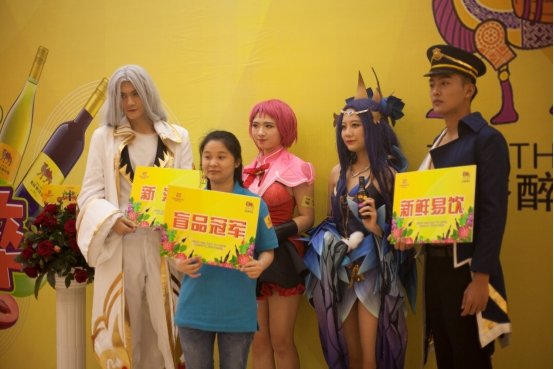 現場以和華服模特,王者榮耀cosplay拍照合影集贊贏獎品為暖場活動。模特們一襲紅衣手持張裕188小醉,光彩照人。王者榮耀的coser們高還原度游戲角色,引得許多玩友前來合影。另有人氣網紅全程直播本場活動。