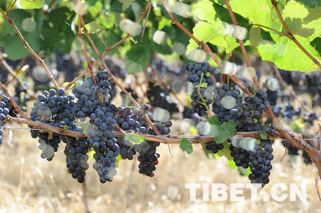 圖為高原有機釀酒葡萄標準化種植示范園中碩果累累(圖片由曲措提供)