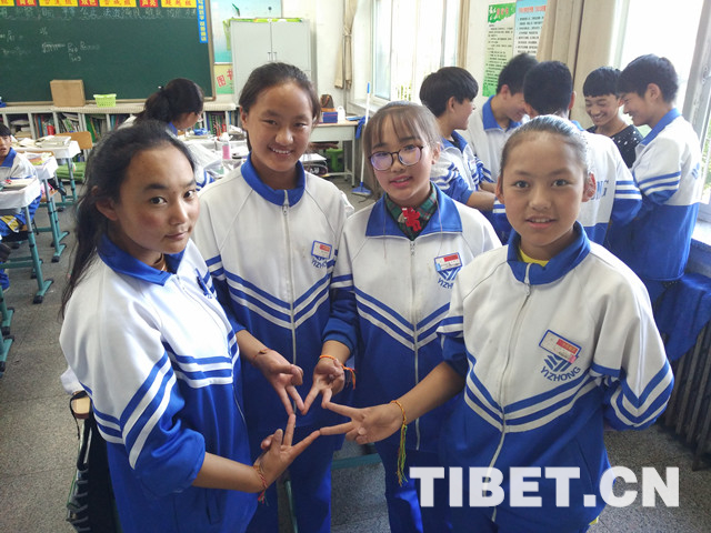 圖為西藏芒康縣藏東珍寶酒業有限公司全額資助的學生噶丹拉姆(右一)(圖片由曲措提供)
