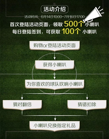 ③對于資深老球迷來說,只需小試身手:競猜你看好了球隊贏,所用的小喇叭直接翻倍,最少一次就能換取禮品;