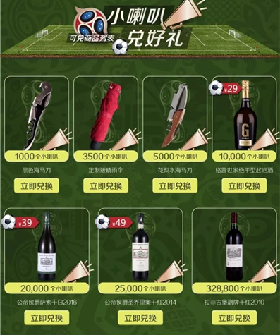 上酒中心的世界杯小游戲讓你深度參與比賽的同時,還有許多福利可拿!6月14日~7月15日,登錄上酒中心會員商(www.winex-sh.cn)并進入活動頁面,為你支持的球隊“吹響小喇叭”,給它吶喊助威,與你心中的“球隊”披荊斬棘登頂世界杯!屆時你還可以用小喇叭兌換各種禮品,例如精美開酒器、定制晴雨傘、意大利原瓶進口葡萄酒,更有機會獲得小拉菲哦!