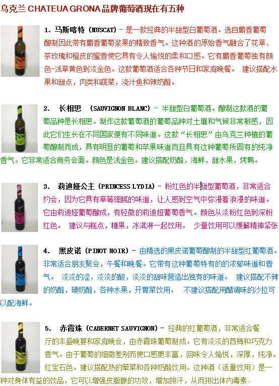 ? 值得一提的是,馬斯喀特(甜白葡萄酒)和莉迪婭公主(甜粉紅葡萄酒)在歐洲市場上沒有類似的產(chǎn)品,這是烏克蘭葡萄酒專家獨/家開發(fā)的產(chǎn)品,目前在世界上非常受歡迎。