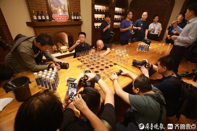 融媒行記者們在安諾酒莊參觀和品鑒葡萄酒。(齊魯晚報·齊魯壹點記者 呂奇 攝)
