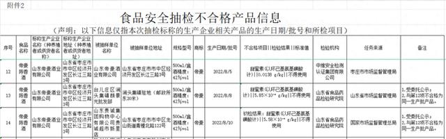 近日,棗莊市市場監督管理局共組織食品安全監督抽檢781批次,其中不合格16批次,合格率97.95%,并發布了棗莊市市場監督管理局食品安全抽檢信息通告 (2023年第03期)。 經過調查,山東帝豪酒
