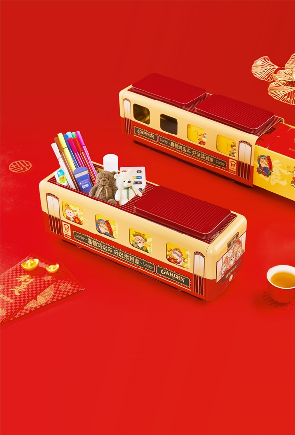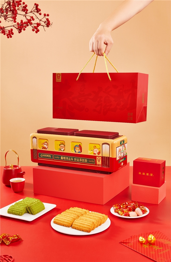 這款鴻運(yùn)車禮盒以香港經(jīng)典印記“香港纜車”為設(shè)計(jì)靈感,將財(cái)神送鴻運(yùn)的美好寓意融入其中,承載著 “好運(yùn)到家”的誠摯祝福。禮盒內(nèi)裝兩款黃油曲奇和利是糖,原味黃油曲奇散發(fā)著濃郁的黃油香氣,每一口都唇齒留香;抹茶牛乳味黃油曲奇則巧妙融合了濃郁抹茶香與醇正奶香,清新馥郁的味道直沁心底。再加上最正宗經(jīng)典的利是糖,象征著“吉利”與“帶來好運(yùn)”,為新春佳節(jié)增添了滿滿的喜慶氛圍。
