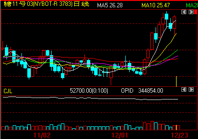 綜合外電12月22日報道,ICE原糖期貨周二收盤上漲近3.55%,受到年底前買盤推動。最為活躍的3月合約收盤上漲88點,報26.50美分/磅,5月合約收盤上漲81點,報25.01美分/磅。