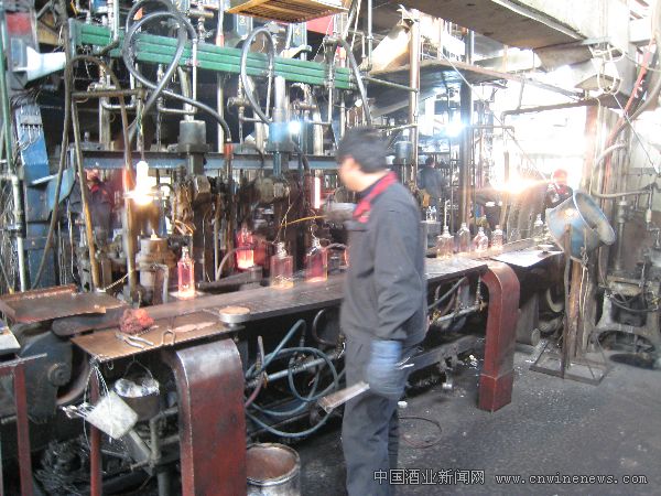 隨著全國白酒銷售熱潮的來臨,晨新玻璃抓住機遇開拓創新,新上設計制圖、烤花等設備,該公司董事長張海洋告訴記者,手工瓶制作具有嚴格的要求,每一個瓶子都要過稱,通過工人打磨削邊等工序做成客戶需要的形狀。該公司可以制作各種形狀的異型瓶,與其合作的酒企遍布全國各地,主要有洋河、金六福、孔府家、金彩山等300余家知名企業,目前,日產量約30萬只左右,烤花瓶年產2500萬只,綜合生產力達到100000多噸。圖為生產線一角。