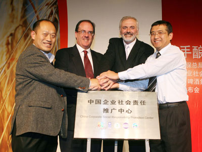 12月5日,中國國家環(huán)保總局宣傳教育中心與英博啤酒集團(tuán)共同為中國企業(yè)社會(huì)責(zé)任推廣中心揭牌,英博正式向該中心遞交其《2007年企業(yè)公民責(zé)任報(bào)告》,并由此成為歸檔該中心的第一家外資企業(yè)。