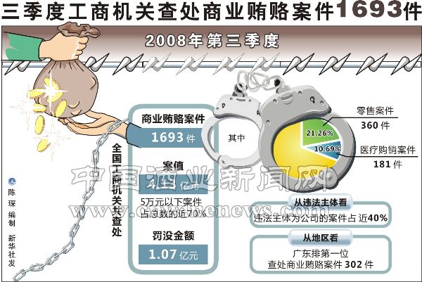 三季度工商機(jī)關(guān)查處商業(yè)賄賂案件1693件