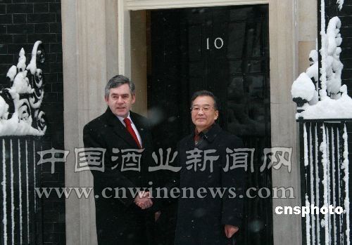 倫敦當(dāng)?shù)貢r間2月2日上午,英國首相布朗和到訪的中國總理溫家寶舉行會談。圖為布文 章 來 源:cnwinenews.com朗雪中在首相府唐寧街十號門口迎接溫家寶總理。 中新社發(fā) 李鵬 攝