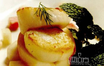 帶子即扇貝,鮮美異常、韌性十足,而水蜜桃的甜中帶酸和濃濃的果香又恰到好處的點綴了帶子的美味。